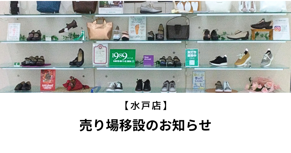 この度、コンフォートクリニック水戸店は、同じフロア内(京成百貨店2階 婦人靴売場)にて場所を移設し、装いも新たにリニューアルオープンいたしました。